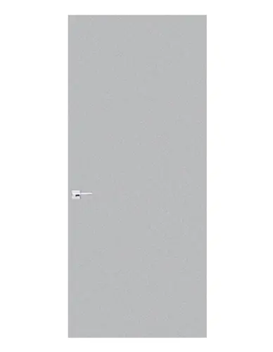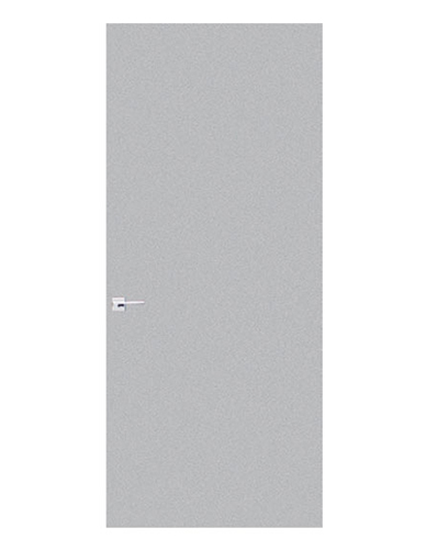 Foaia de ușă are grosimea de 52 mm și este realizată cu falț, pe structură celulară și ramă perimetrală din lemn masiv. Panourile exterioare sunt din HDF de 6 mm, pregătite pentru finisaj. Ușa este echipată cu toc din aluminiu prevopsit alb.